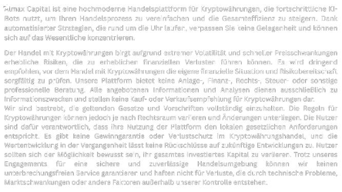 Almax Capital ist eine professionelle Handels- und Investitionsplattform, die KI-gestützte Bots, Multi-Asset-Integration und institutionelle Sicherheitsstandards bietet.
